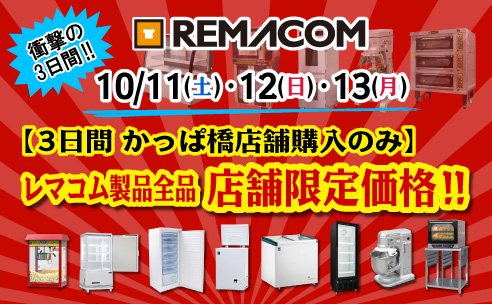 10/11(土)~10/13(月)の3日間、かっぱ橋店舗購入のみ、レマコム製品全品 限定価格で販売致します!!