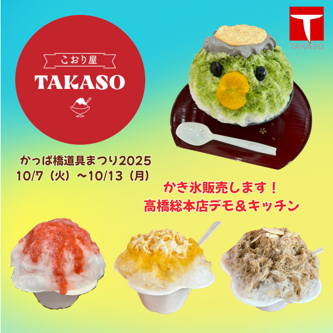 毎年ご好評いただいております『こおり屋TAKASO』が、今年もかっぱ橋に復活します!!