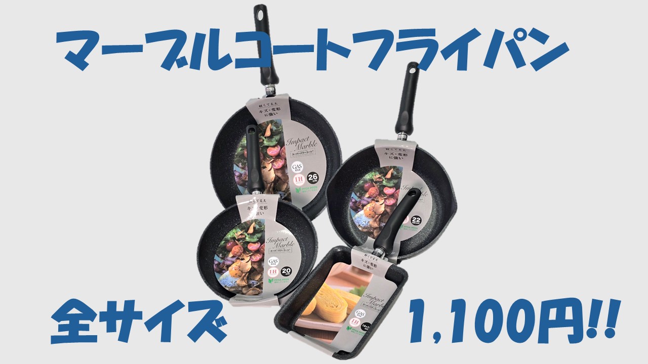 IHもガスも使えるマーブルコートフライパンが数量限定で全サイズ税込¥1,100★