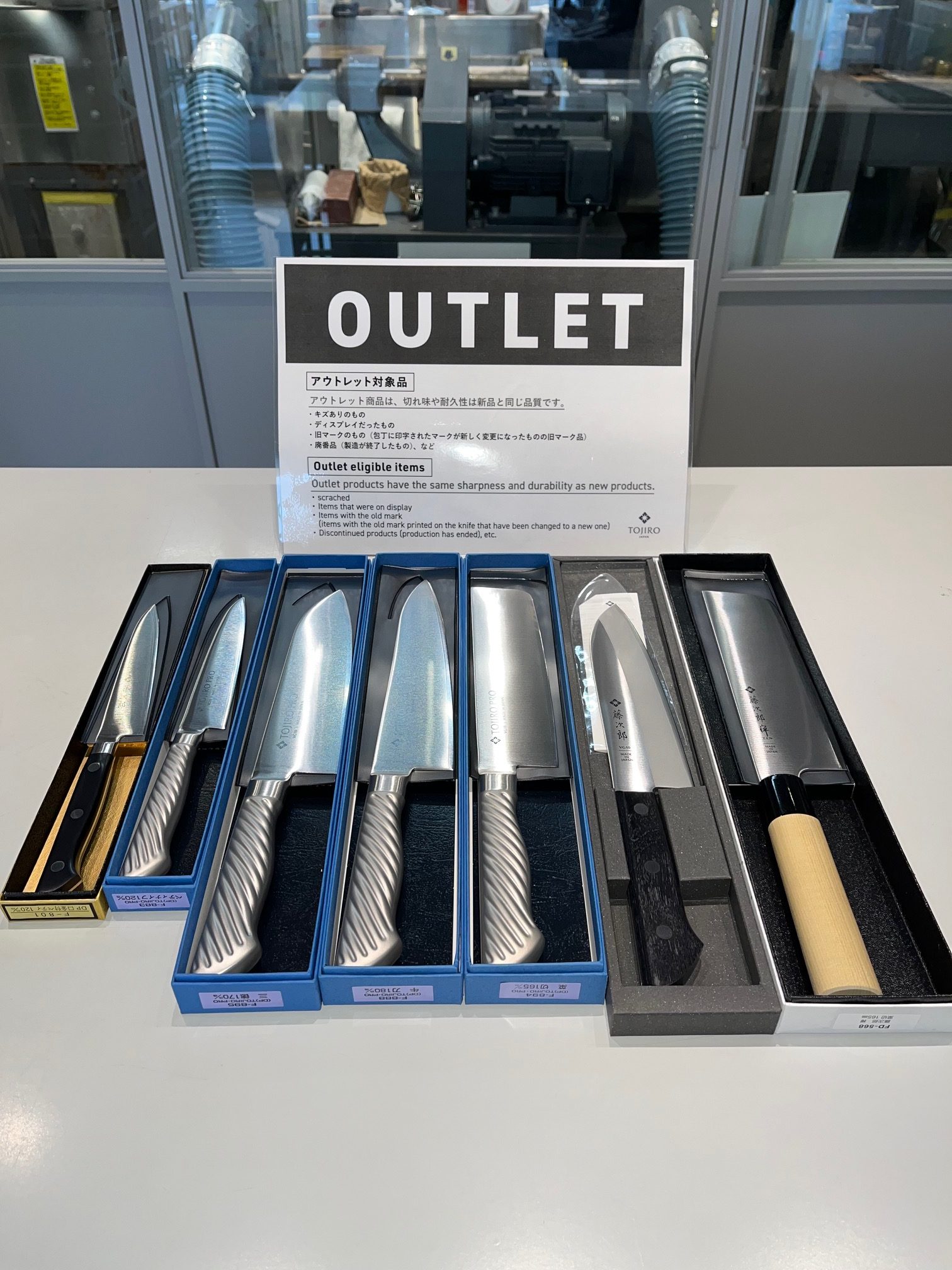 藤次郎ナイフギャラリー東京店及び、隣接する東京2号店の両店舗にて、今年もアウトレットセールを行います。アウトレットアイテムの対象としては、廃番品やディスプレイとして陳列していたもの、キズありのものなど様々ですが、切れ味や耐久性は新品と同じ品質の為、とてもお買い得です。また、その他にもお買い得なキッチングッズを店頭にて販売予定の為、この機会を是非お見逃しなくご利用ください。